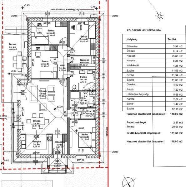 alapterület összesen: 118,00 m2BRUTTÓ BEÉPÍTETT ALAPTERÜLET: 151,65 m2Gázcirkós