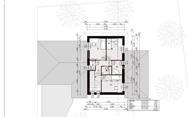 fürdőszoba, háztartási helyiség, garázs, terasz.o Emelet: közlekedő, 3 különálló