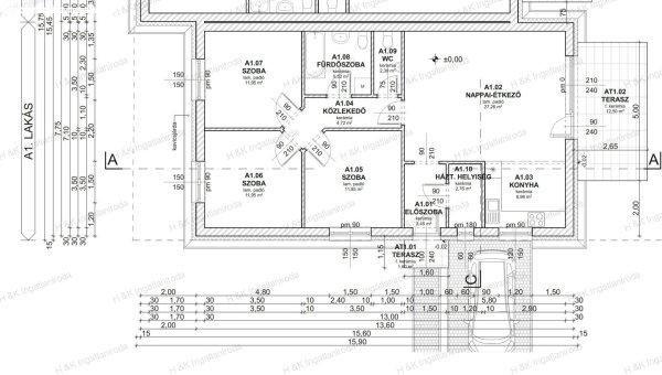 2,76 nm, konyha 6,96 nm, külön WC 2,39 nm, teraszok 12,5 nm és 1,8 nmRövid