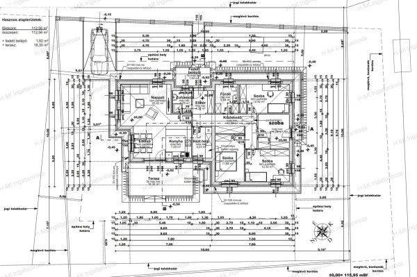 alapterületű, ebből a lakótér 112,56 nm + terasz + fedett belépő, családi ház