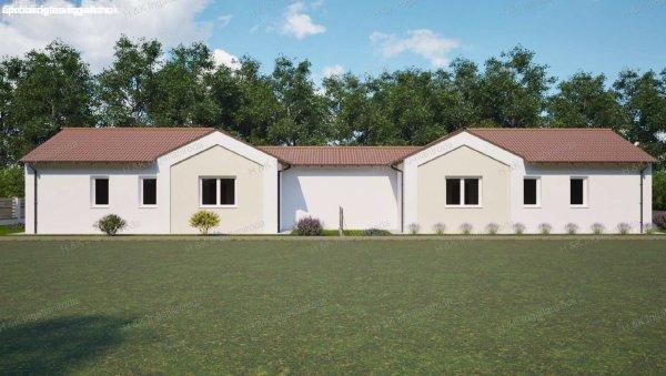 Új építésű, földszintes, CSAK A TÁROLÓKKAL érintkező ikerház mindkét fele