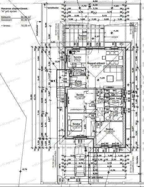 megtekinthetők. A ház 91 m˛ lakóterű, nappali + 3 szobás elrendezésű, amelyet