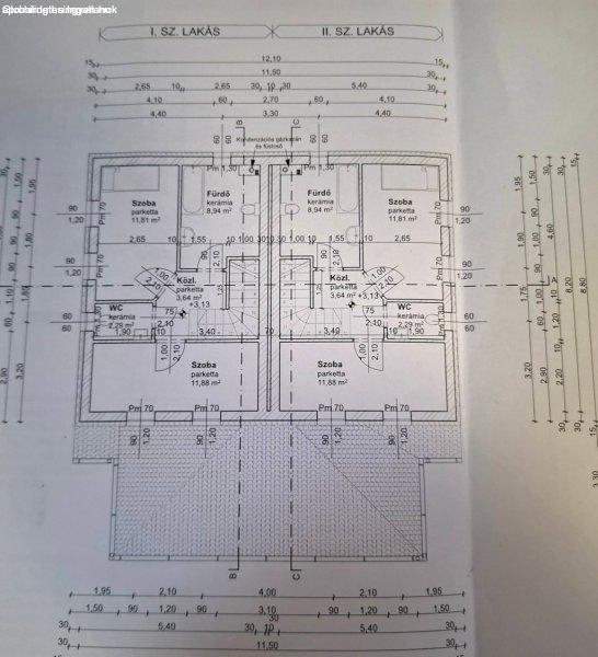 burkolatwc 2,29 nm, kerámia burkolatszoba 11,81 nm, parketta burkolatszoba 11,88