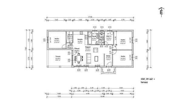 alapterület + 19 m2 fedett terasz- 793 m2 telek terület- 3 szoba + nappalis