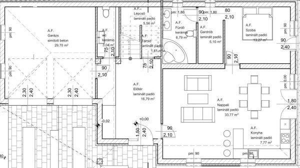 dupla garázsos családi ház eladó. Egész nap világos, benapozott nappali.