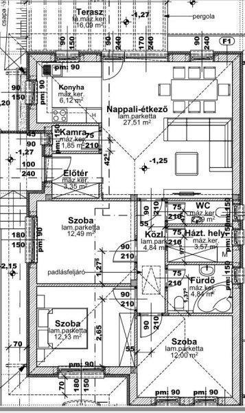 lakótér + 16 nm terasz.?Elosztás: Amerikai konyhás nappali + 3 külön nyíló