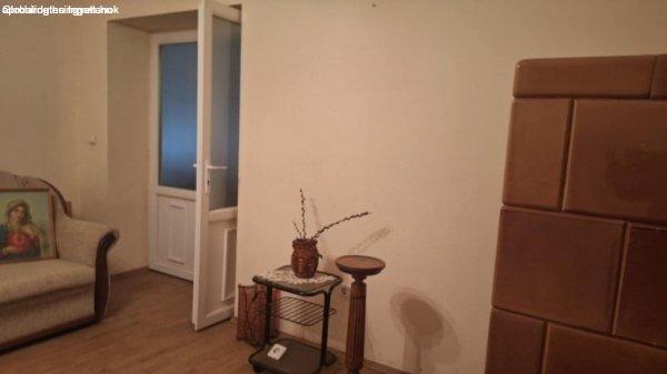 közlekedő található.Fűtéséről gáz konvektor gondoskodik, és 2 db cserépkályha.