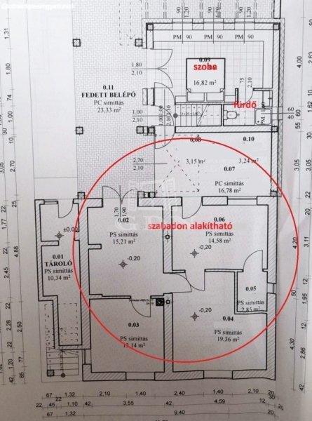 földszinten: A lenti 100 m˛-es befejezésre váró rész aranyat ér! Lehet belőle