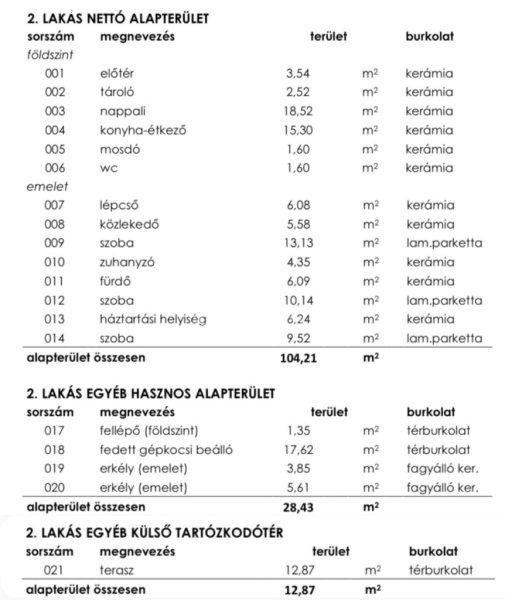 területek: ? Fedett gépkocsi-beálló: 17,62 m˛ ? Erkélyek összesen: 9,46