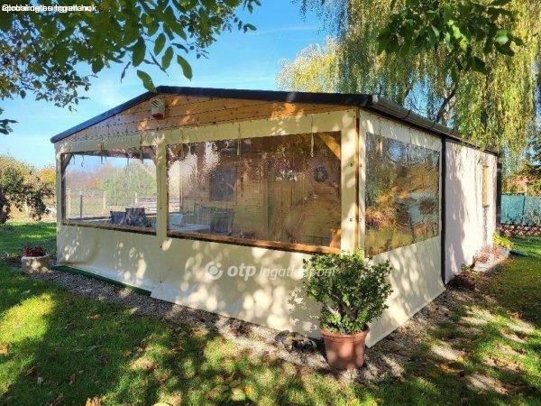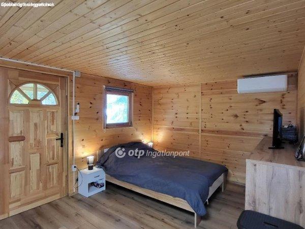 telken épült 52 m2 könnyűszerkezetes kis házikó és egy hangulatos teljeskörűen