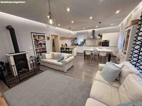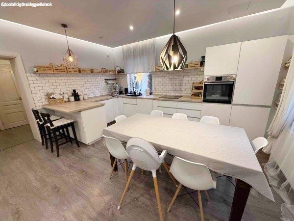 cserépkandallóval,- konyha - étkező extra minőségű, gépesített konyhabútorral,-