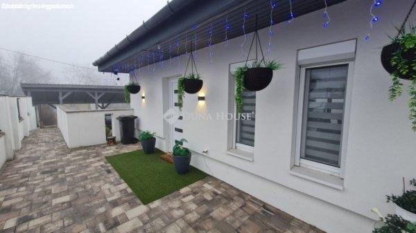 2022-ben épült, 104 m˛-es kétszintes családi házat.A keletnyugati tájolású