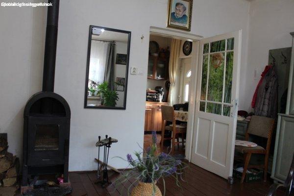 Belső ajtók hagyományos fa, gondozva, kezelve.Fűtése a nappaliban kandallóval