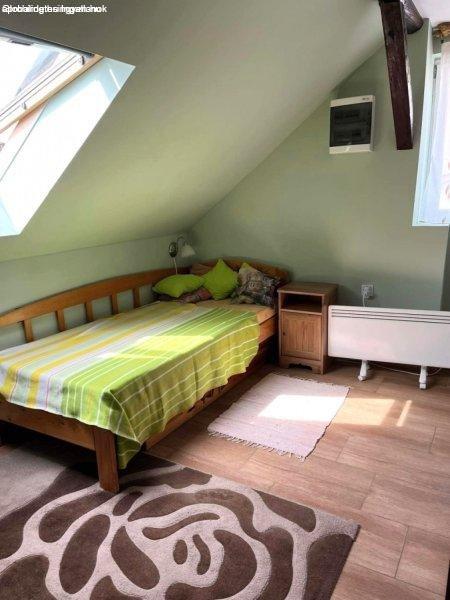 felső szintjének lakása, gyönyörű panorámával. A házhoz tartozó telek 250m2.Az