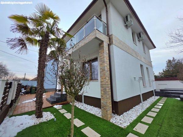 szintes, fűtött garázzsal, épített jakuzzival és medencével, riasztóval és