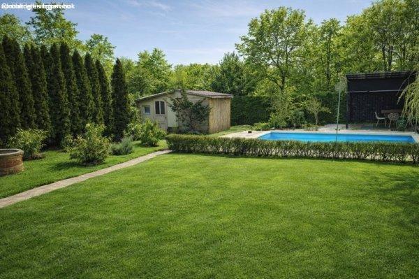 körben napozott udvar valódi oázis: igényesen parkosított kert, medence, kültéri