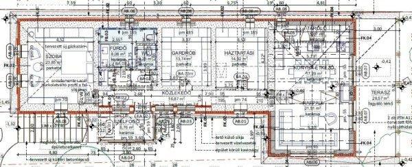 Hálószoba: 13,74 m2- Fürdőszoba: 8,08 m2- WC: 2,23 m2- Konyha - Étkező: