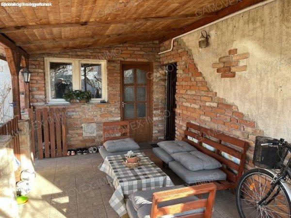 garázzsal, esőtől, naptól tetővel védett kerti étkezővel...És itt még nincs vége