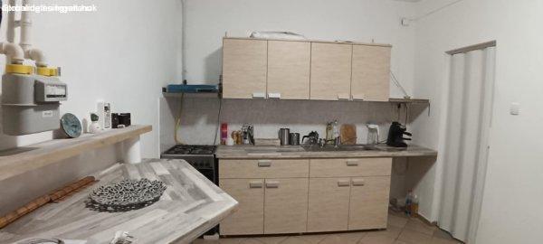 csempézve-fűtés, világítás, melegvíz működik-tároló és parkoló van a belső