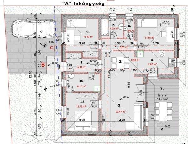 525 m˛-es kertrész is.Műszaki paraméterek:97 m˛-es családi ház + 20 m˛ épített