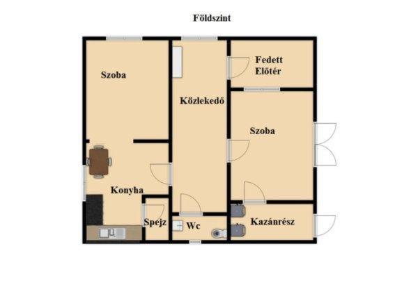telekkel. A házban, ami tégla építésű a földszinten van: közlekedő,