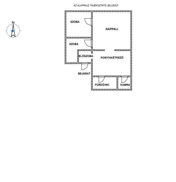 előszoba, 2 szoba, egy tágas nappali , konyha/ étkező, fürdőszoba/ wc és egy
