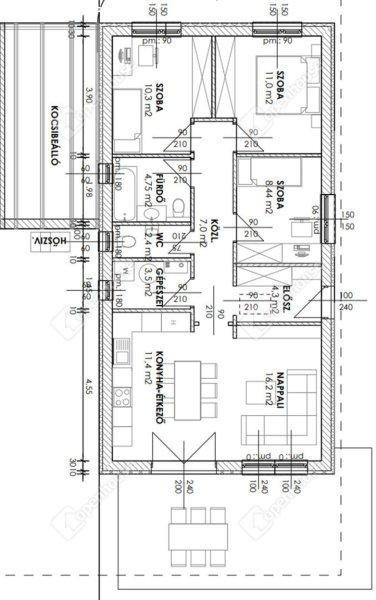 terasszal, + 18 m2 kocsibeállóval. Nappali-konyha-étkező mellett három hálószoba