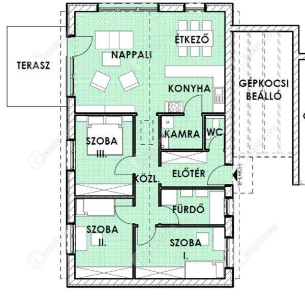 nm-es ikerház + 12 nm terasz + 18,9 gépkocsibeálló- 3 szoba + nappali elosztású,