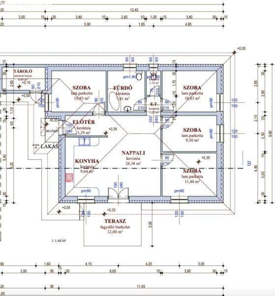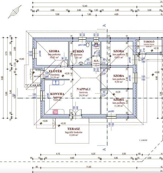 10.83m2-Nappali: 24.38m2-Konyha: 9.64m2-Tároló: 4.80m2-Terasz: 12m2Az