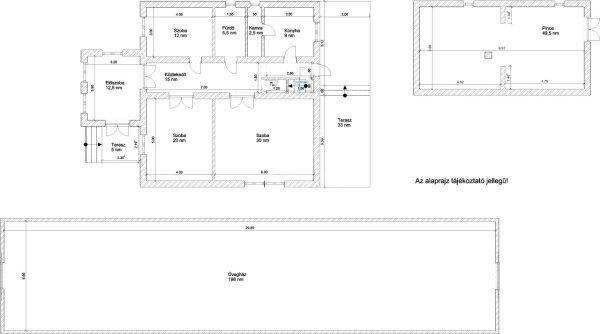 A ház beosztása:- előszoba 12,5 nm,- közlekedő 15 nm,- szoba 12 nm,- szoba 20