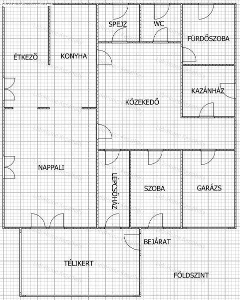 nyílik, földszintjén nagy nappali, 1 szoba, konyha étkezővel, spájz, fürdőszoba,