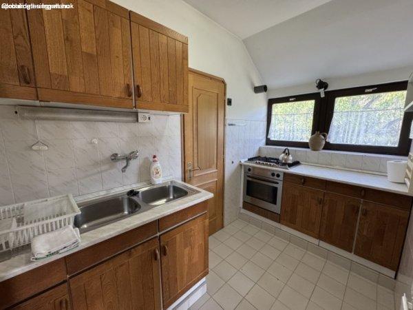 konyha + kamra, fürdőszoba + wc és közlekedő.Fűtését gázkazán biztosítja és