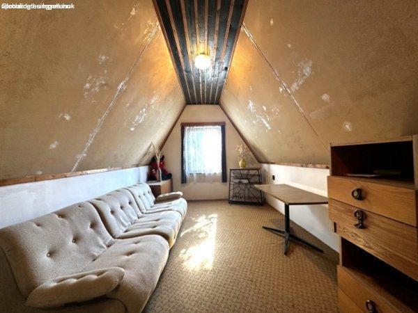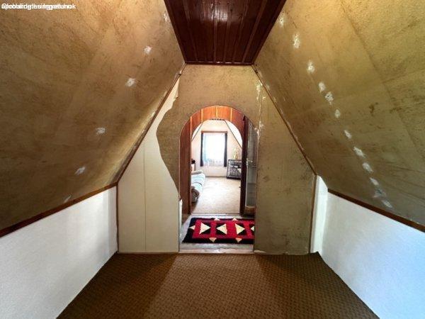 nyári konyha található. Itt gázkonvektoros fűtés van.A padlástérben 2 szoba