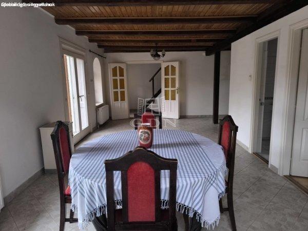 egyszintes külön bejáratú tégla falazatú lakrész + 22 nm-es kisház is. Az