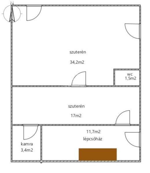 kamra 3,4 nm,- műhely 34,2 nm,- WC, mosdó 1,5 nm,- szuterén tároló 17