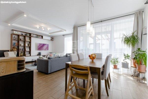 külön nyíló szobával, dupla komforttal nagy amerikai konyhás nappalival