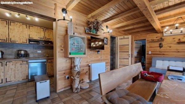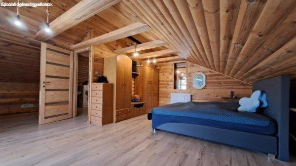ház panorámás kilátással a tóra, 5 db kis faház, valamint 3 db lemez garázs is.A
