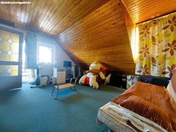kerttel.A beépített tetőtér további két szobát, egy fürdőszobát WC-vel egyben,