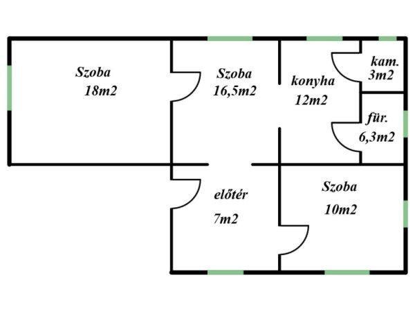 ingatlan helyiségei: 2 tágas szoba világos nappali konyha fürdőszoba