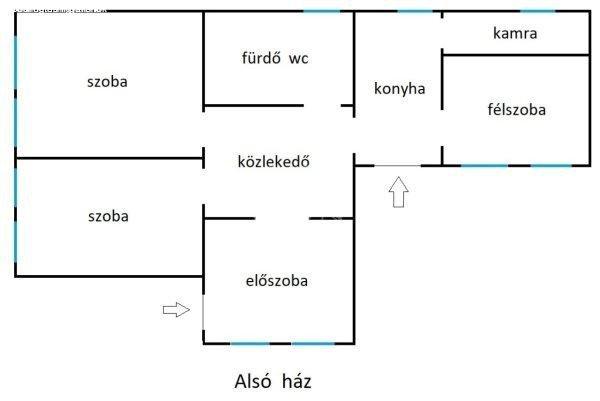 összközműves telken lévő, 2 db családi ház eladó.Alsó, az utcához közelebbi