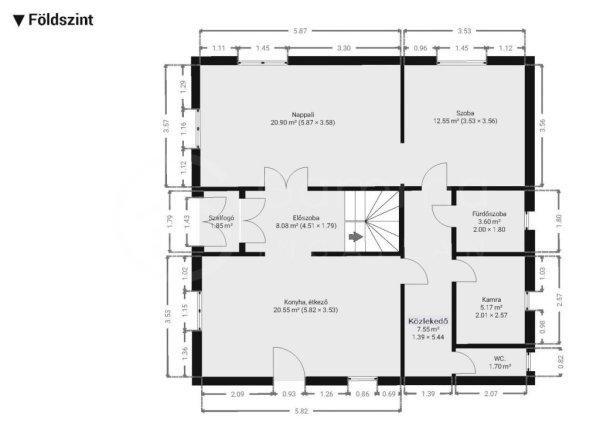 Fürdőszoba- WC.- Kamra- Közlekedő- Előszoba- SzélfogóEmelet- 2 db szoba-
