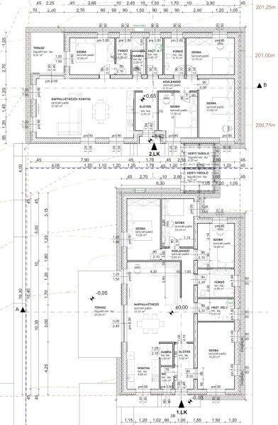 előtér, nappali-konyha-étkező, kamra, közlekedő, 4 szoba, fürdő, háztartási