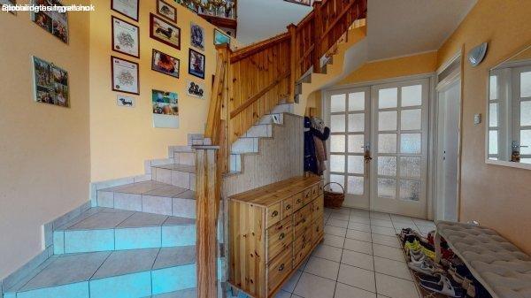 a földszint + tetőtérben egy 142 m2 hasznos alapterületű, 3 hálószoba, társalgó,
