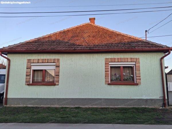 Családi házak rovaton belül a(z) "Eleki felújított kockaház 30 nm-es fedett terasszal" című hirdetést látja. (fent)