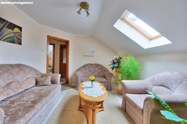 apartman egy szobája a földszinten, egy pedig a tetőtérben lett kialakítva. Ez