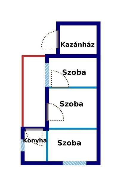 ház, amelyben előszoba, 2 szoba valamint egy külön bejáratos konyha található.Az