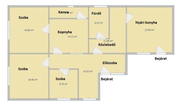 (2175 m2) helyezkedik el.Fűtését 4 db cserépkályha biztosítja.Gázcsonk az