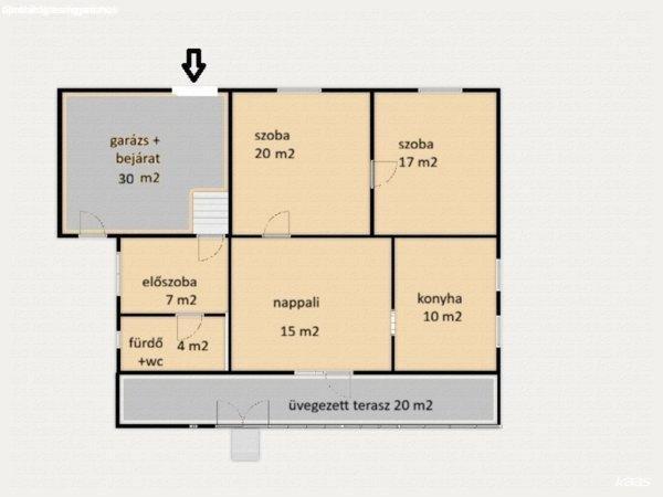 m2 + 20 m2 üvegezett terasz + 30 m2 garázs amelyben a bejárat