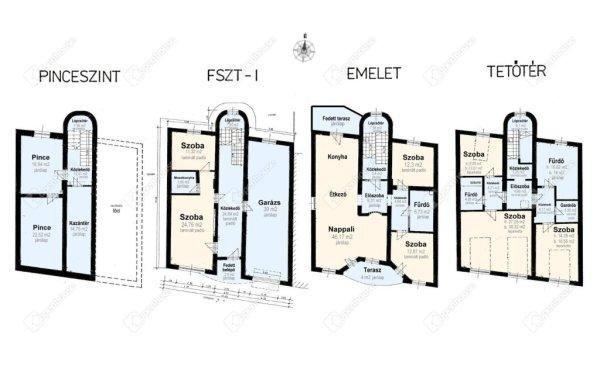 garázs - a szobákon kívül belső udvari fedett terasz, utcafronti erkély,