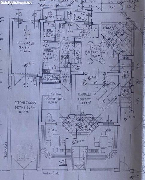 megközelíthető.A földszinti rész ugyancsak 89 nm területű, nappali, konyha,